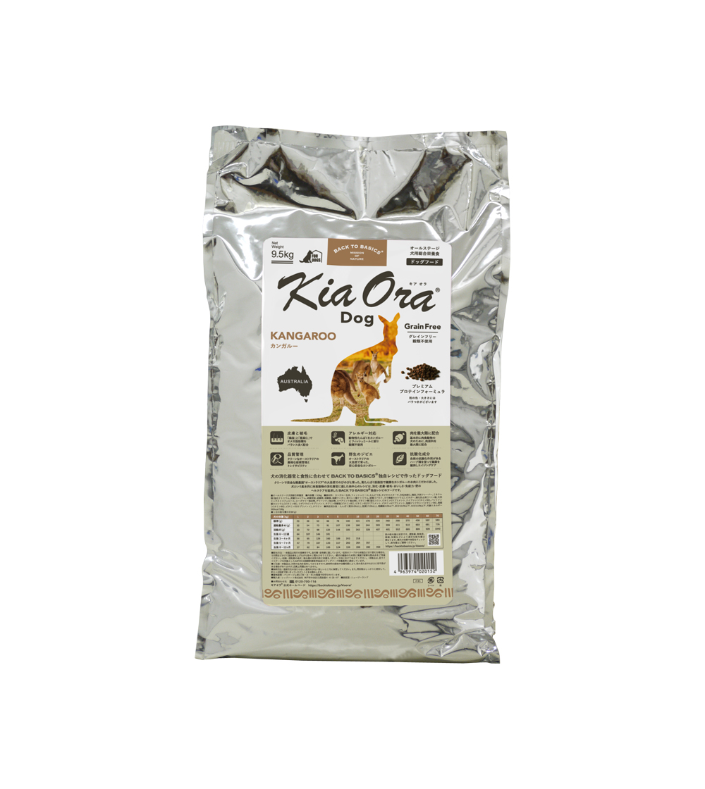 | 原材料 | カンガルー生肉、ドライフィッシュ、えんどう豆、タピオカスターチ、全粒亜麻仁、鶏脂、天然フレーバー、ミネラル類(塩化ナトリウム、炭酸カルシウム、硫酸亜鉛、硫酸鉄、硫酸銅、硫酸マンガン、亜セレン酸ナトリウム、硫酸コバルト、ヨウ素酸カルシウム)、ビネガー、酸化防止剤(クエン酸、天然ミックストコフェロール、ローズマリー抽出物、グリーンティ抽出物、スペアミント抽出物)、ビタミン類(塩化コリン、ビタミンEサプリメント、ナイアシン(ビタミンB3)、パントテン酸カルシウム(ビタミンB5)、リボフラビンサプリメント、チアミン硝酸塩(ビタミンB1)、ビタミンB12サプリメント、ビタミンAサプリメント、塩酸ピリドキシン(ビタミンB6)、葉酸(ビタミンB9)、ビタミンD3サプリメント)、タウリン |