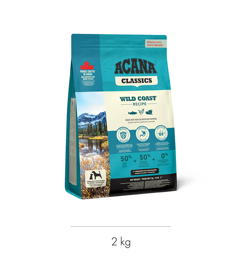 「ACANA(アカナ)ワイルドコーストレシピ」には、天然のニシンやヘイクといった動物原材料から得られた質の良いタンパク質とオメガ脂肪酸が含まれています。