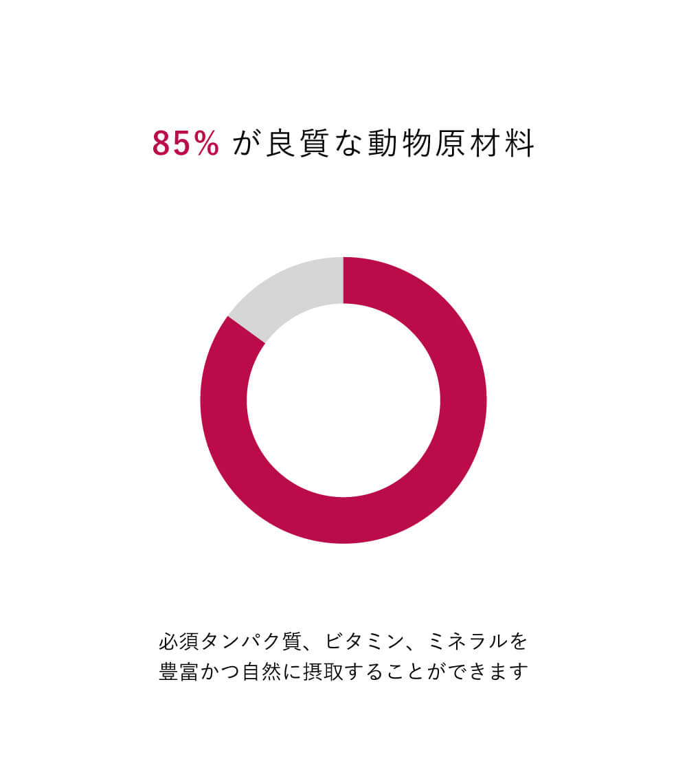 肉、内臓、軟骨、骨を丸ごと使用することで自然本来の栄養素を再現しています。