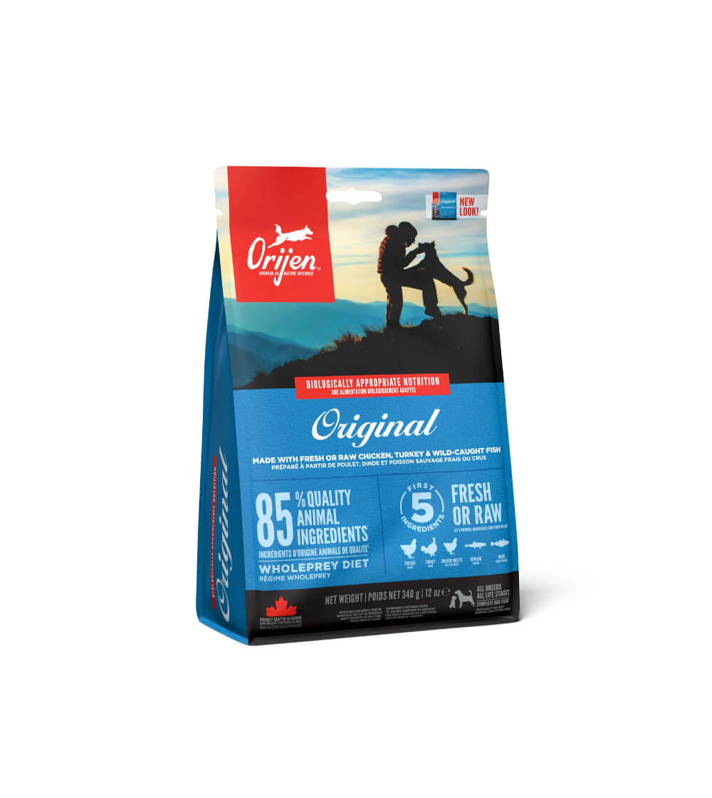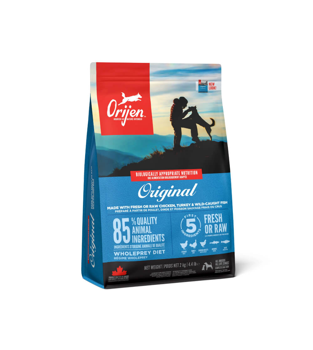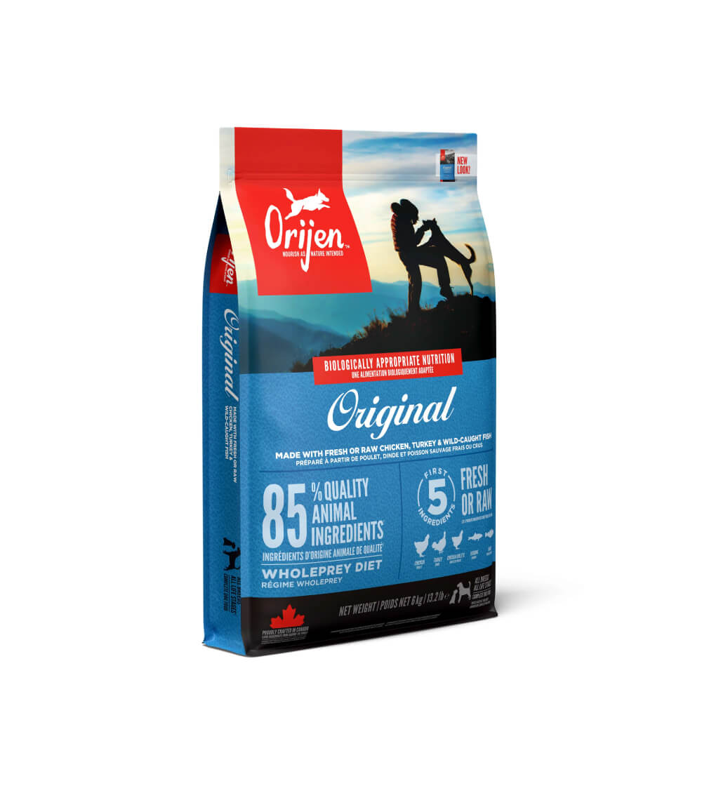 「オリジン オリジナル」は放し飼いで健康的に育った鶏や七面鳥、天然魚、平飼い卵など高品質な動物性原材料を使用し、その3分の2は新鮮または生のもの。