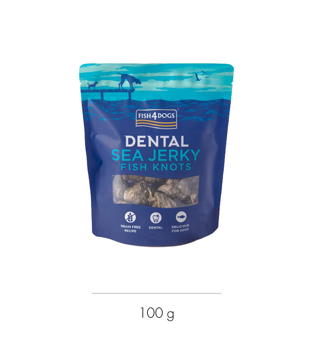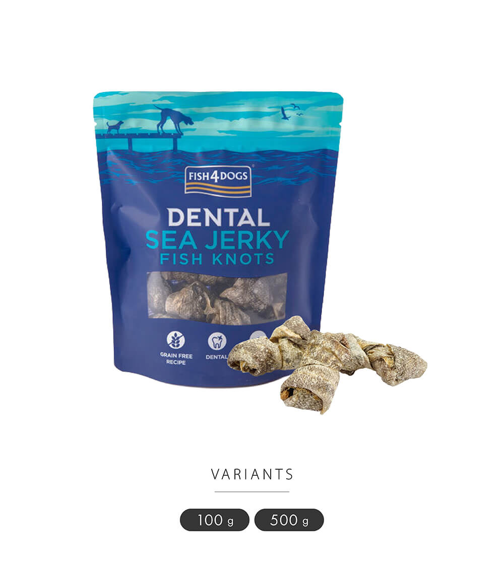 100%天然素材(ホワイトフィッシュの皮のみ)を使用した歯垢除去に効果的な、ナチュラルでヘルシーなデンタルケアトリーツ。