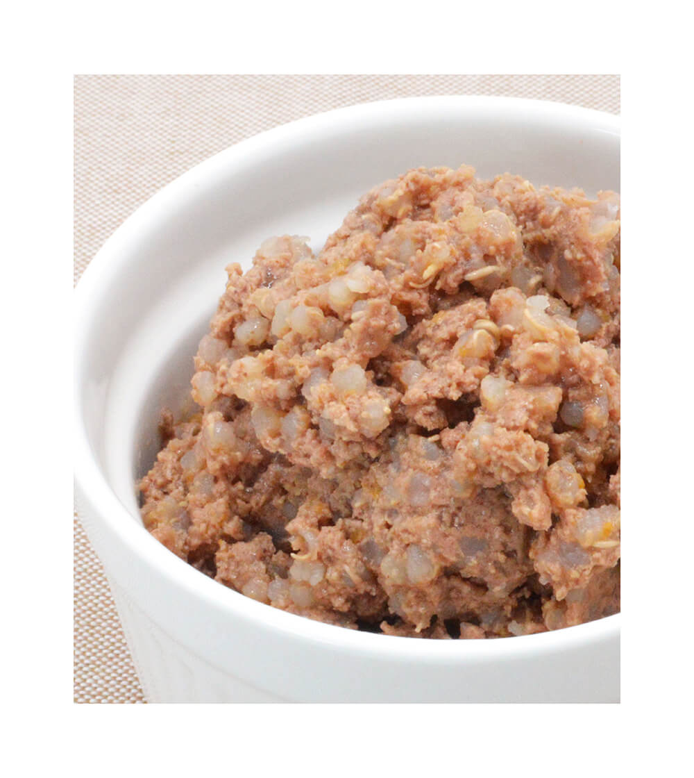 ビオリオーブは増粘安定剤・発色剤・着色料不使用。原材料の生育にホルモン剤や抗生物質も使っていません。素材本来の「香り」と「味」が活きているお肉やお魚のおいしさは、きっとパートナー(愛犬)の表情と嗜好性の高さでご確認いただけます。封を開けた瞬間にパートナーの目が輝く味わいをお楽しみください。