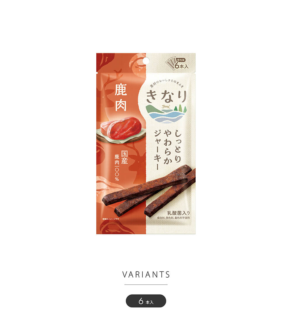 国産鹿肉と乳酸菌パウダーのみでつくった、シンプルなジャーキー。