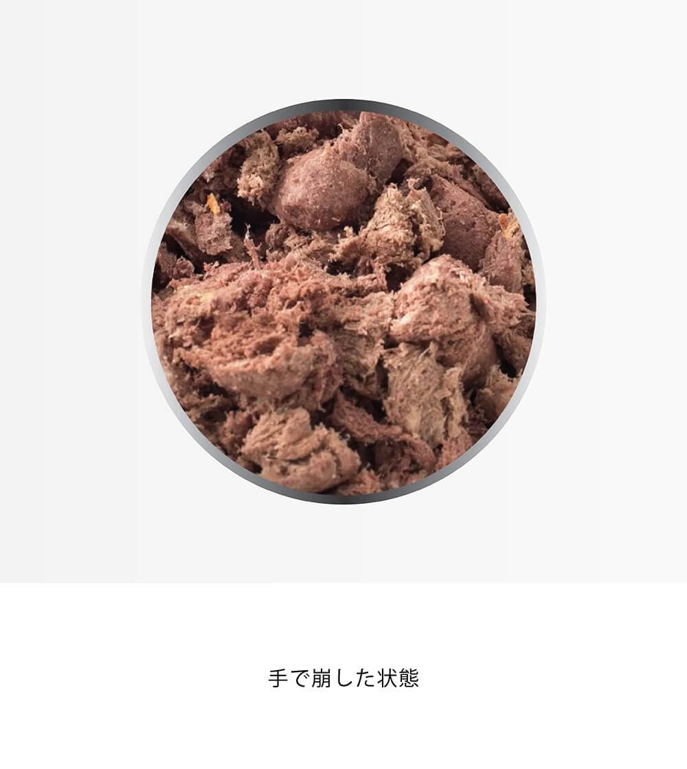 犬にとって最高の食事といわれる生食を最適な栄養バランスのレシピでフリーズドライ加工しました。