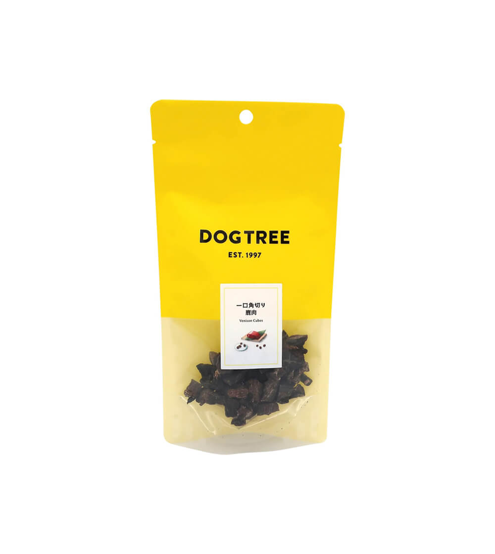 国産の野生の鹿肉を一口サイズの角切りにした食べやすいおやつです。