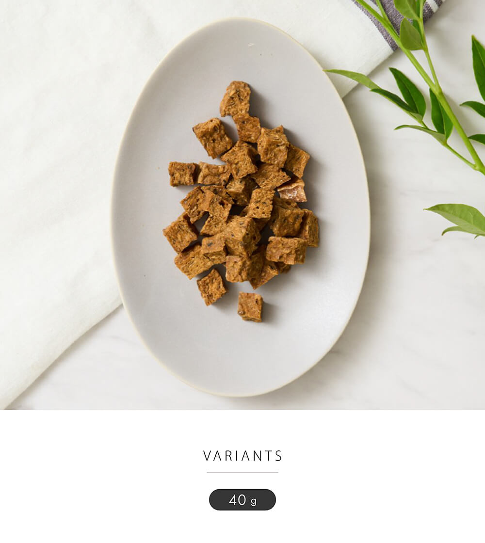 一口サイズなのでお出かけのお供や、ご褒美おやつ・トレーニングのおやつ・フードのトッピングとしてもおすすめです。