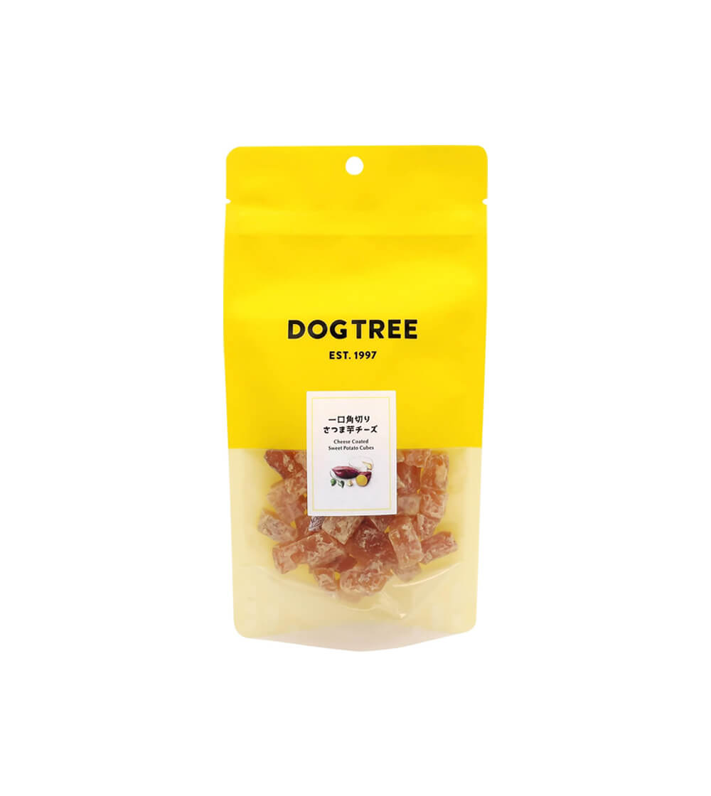 約1.5cmの一口サイズに角切りにしたさつまいもにチーズをコーティングして乾燥させました。