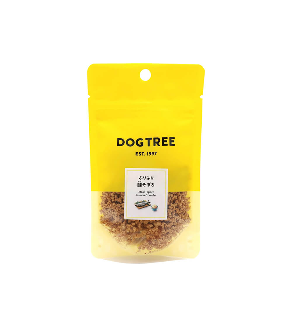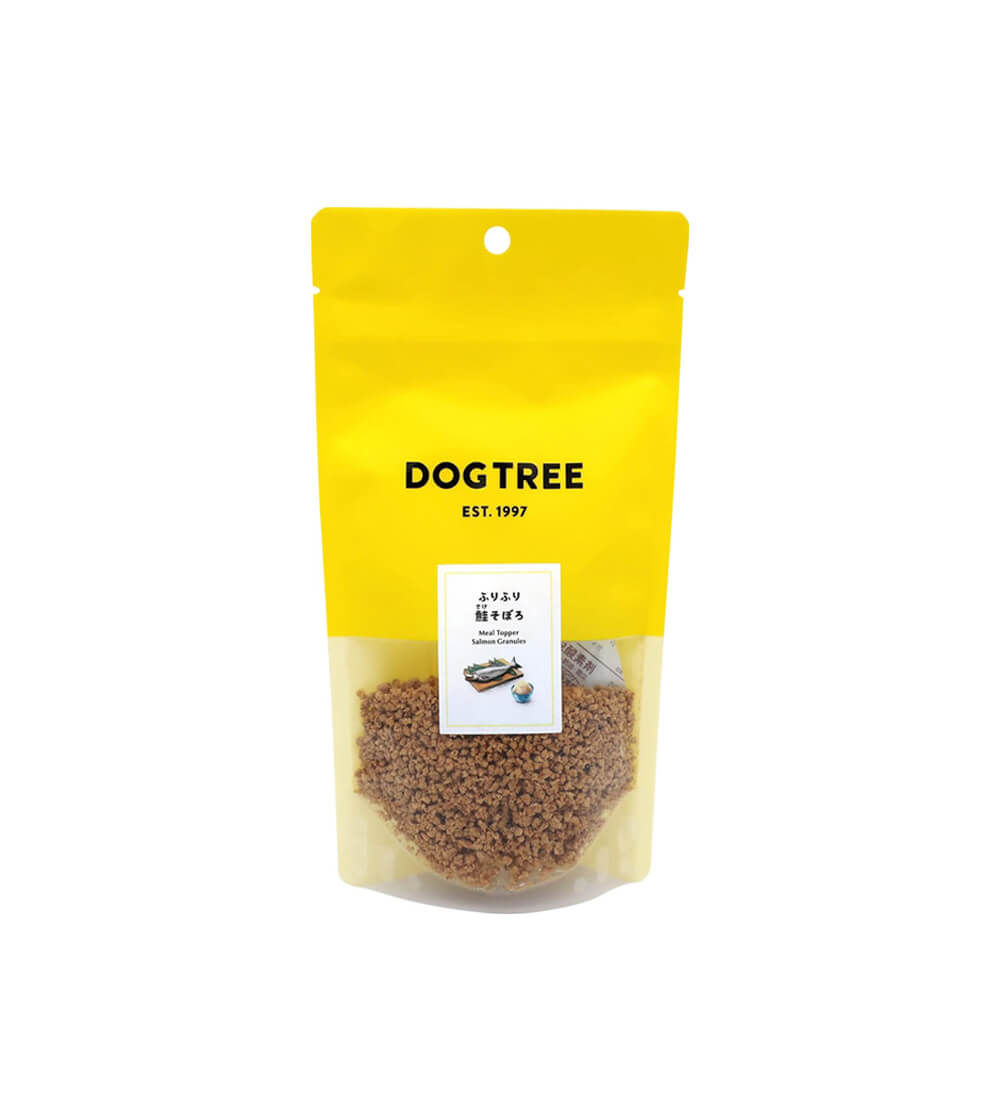 毎日ごはんにふりかけて「栄養たっぷりトッピングごはん」 新鮮な鮭の身をそぼろ状に食べやすく仕上げました。 鮭はDHA・EPA・アスタキサンチンなどが豊富に含まれています。 風味が良いので肥満気味な愛犬のおやつや食事のトッピングにおすすめです。