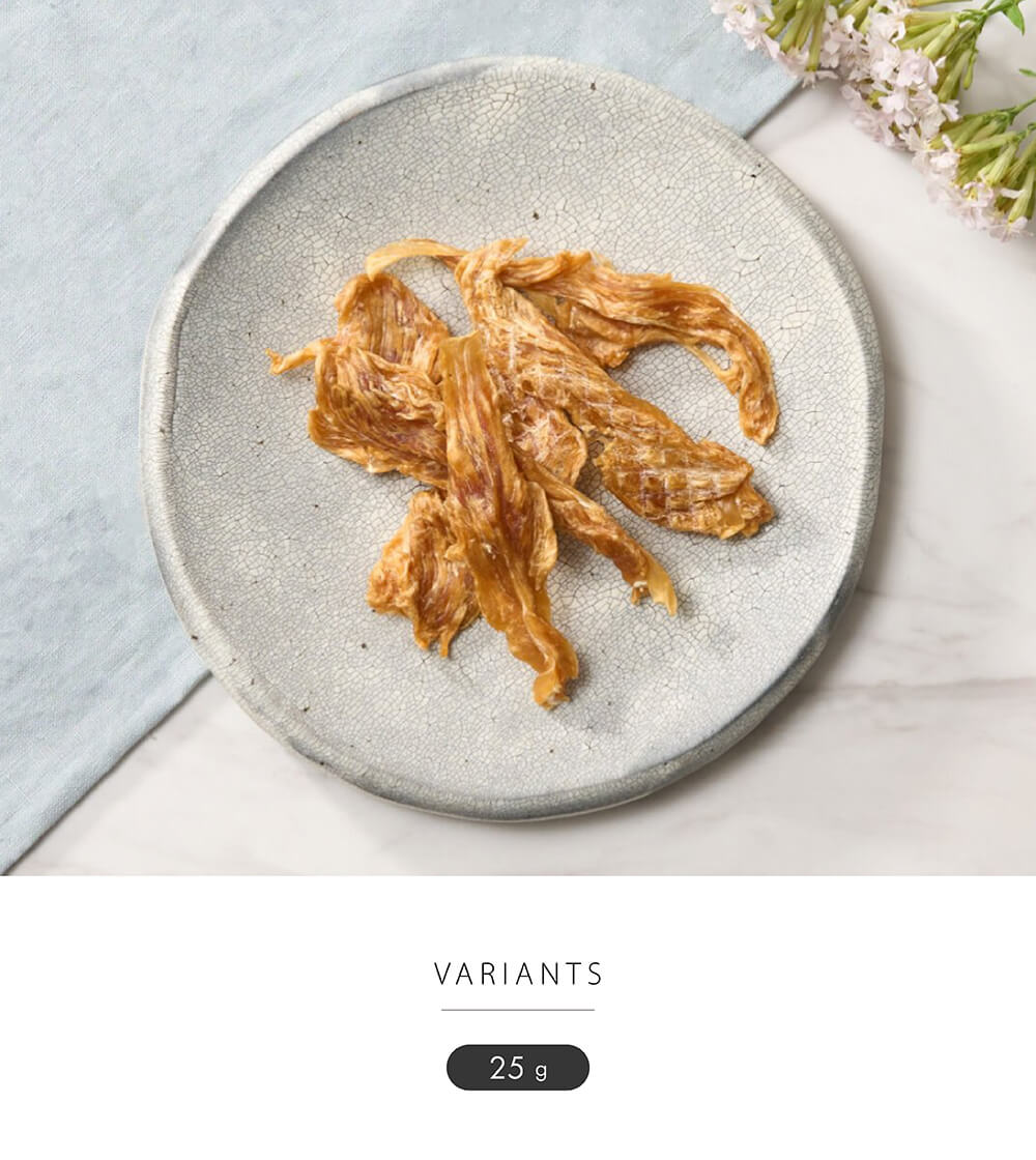 鶏肉のすじを、美味しさと栄養そのままに低温でじっくり乾燥させました。