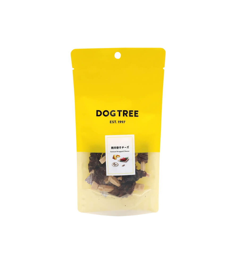 カルシウム豊富なプロセスチーズのスティックに、高タンパク・鉄分・ミネラル豊富な国産天然鹿の肉(ジビエ)を巻きつけました。
