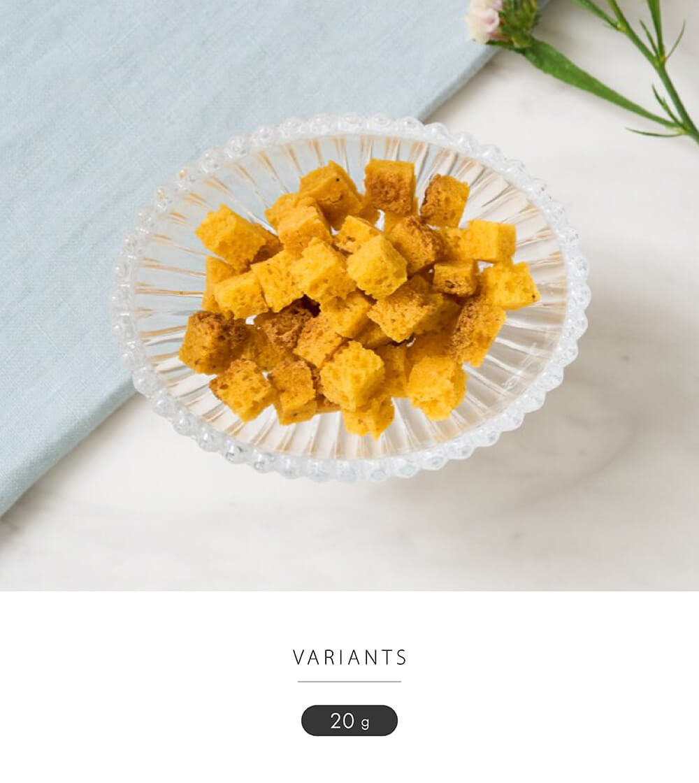 嗜好性の良い国産の鹿肉パウダーとビタミン豊富なカボチャを混ぜ込んだかわいいラスクです。