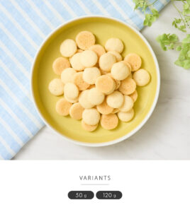 | 原材料 | 米粉、馬鈴薯澱粉、蜂蜜、オリーブオイル、かぼちゃパウダー、鹿肉粉 |
