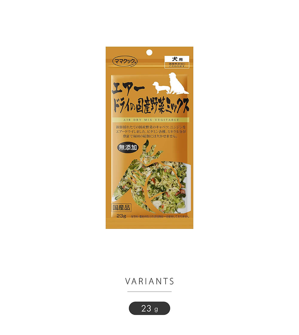 ペット用乾燥野菜では珍しい、完全国産原料・完全無添加。