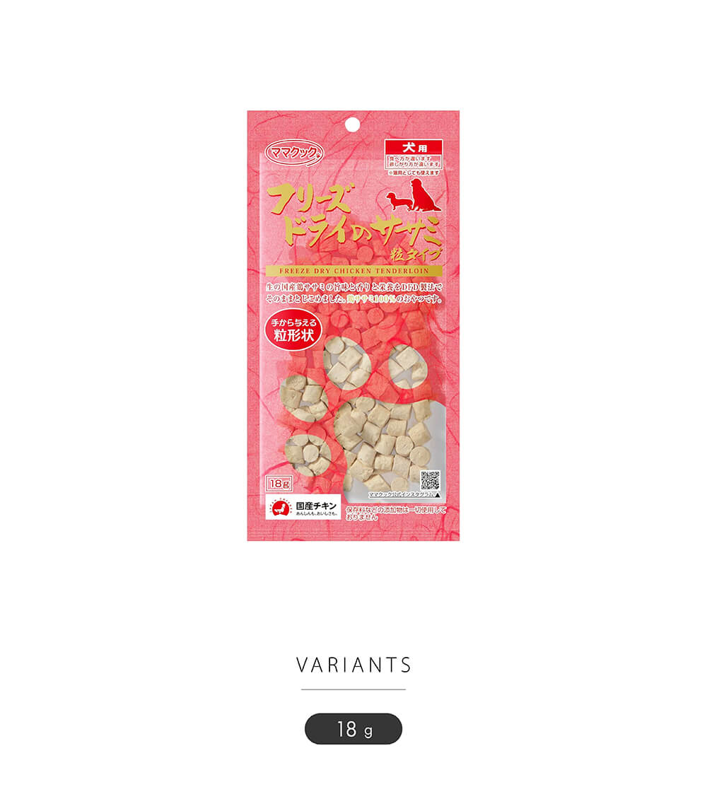 使いやすさ抜群!ママクックで人気のフリーズドライササミを、与えやすい粒タイプに仕上げました。