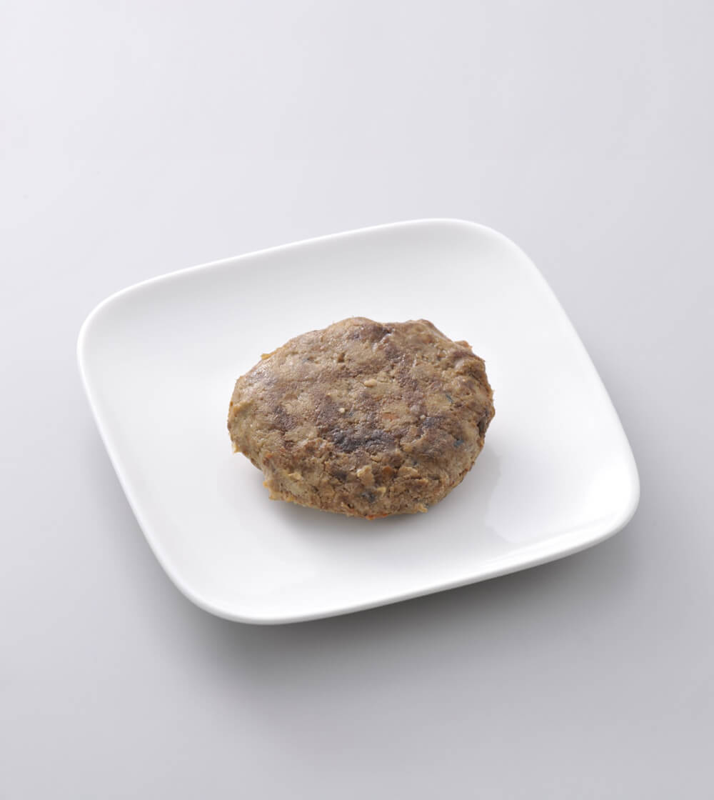 ハンバーグの表面に黒い点のようなものが付着している場合があります。これは焼成時に付着した焦げ(黒い点)となりますが、品質には問題ございません。