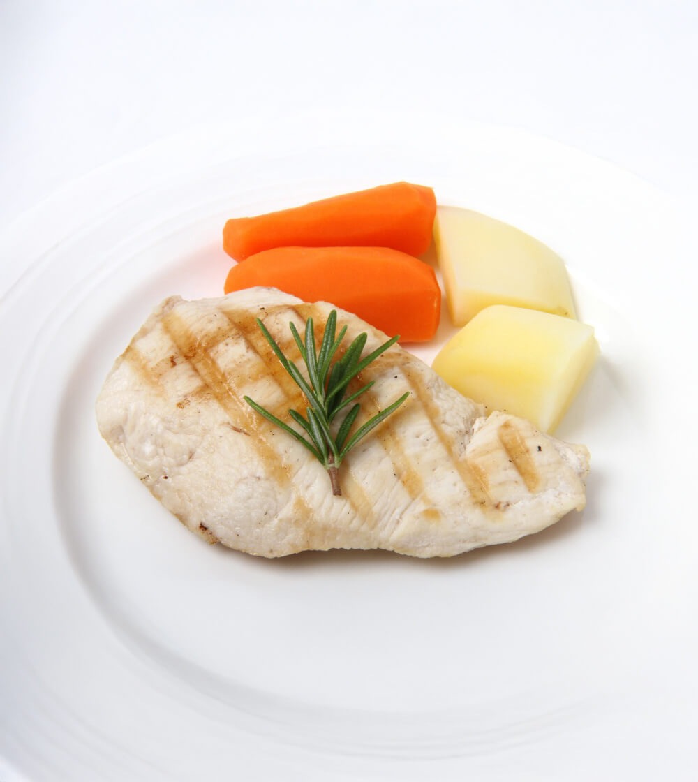 鶏ムネ肉をローズマリを添えて、グリルでじっくり焼き上げました。