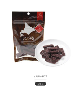 | 原材料 | 鹿肉(エゾ鹿)、でん粉(馬鈴薯澱粉)、塩(0.006g使用) |