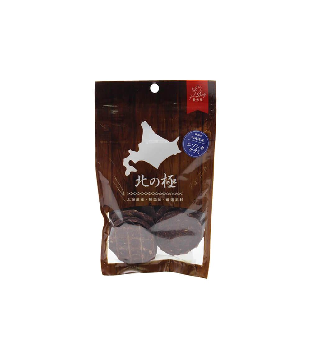 エゾシカ肉の旨みを凝縮したサラミタイプのジャーキー。