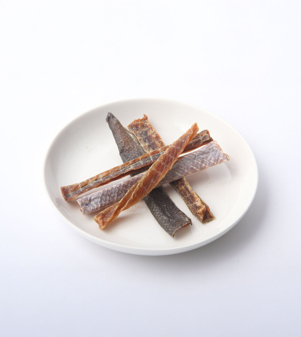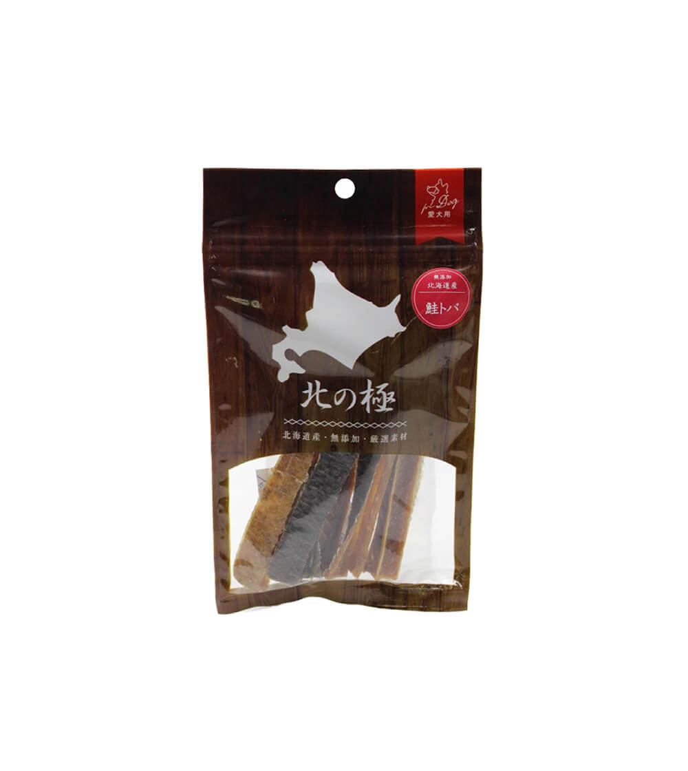 [とば]とは、秋鮭を細く切って干したものですが、ワンちゃんのために真水で塩分抜きをして洗って乾燥させています。