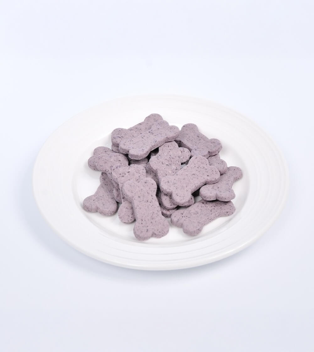ブルーベリーの旨みをギュっと閉じ込めて、じっくり乾燥させたカリカリ食感トリーツ。