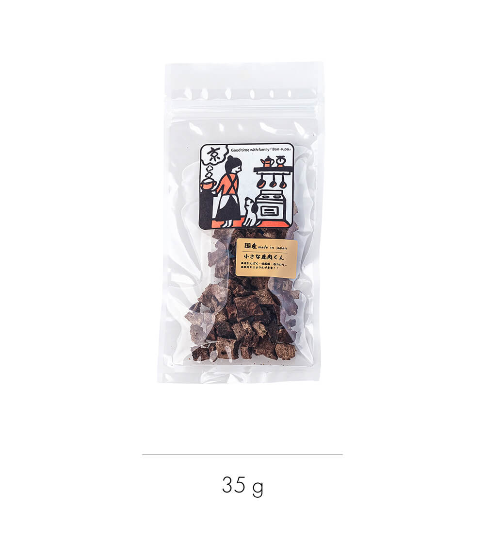 鹿肉をミンチにしてから小さくカットし、乾燥しました。小さなワンちゃんでも食べやすいです。添加物等一切不使用の無添加です。