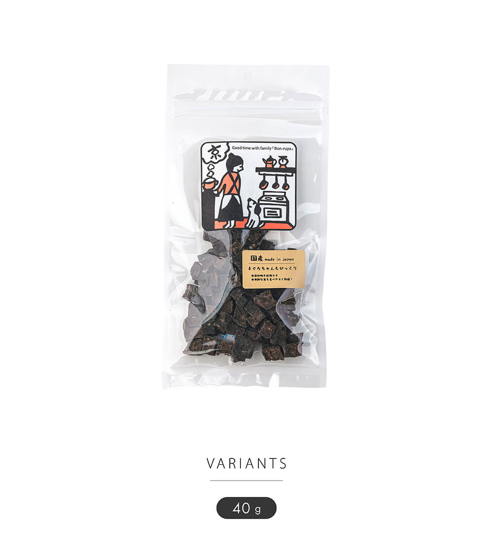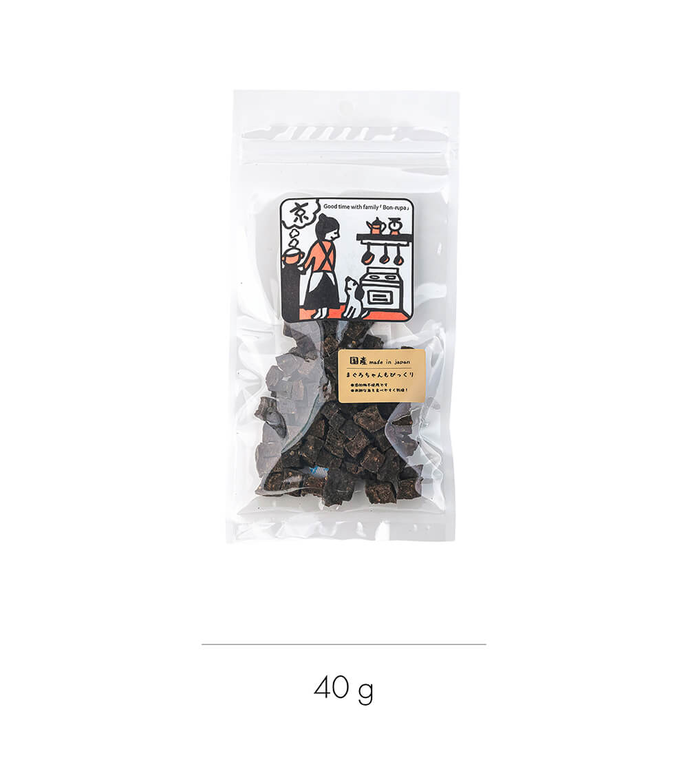 新鮮なマグロを小さく形成し、乾燥させたおいしいおやつです。