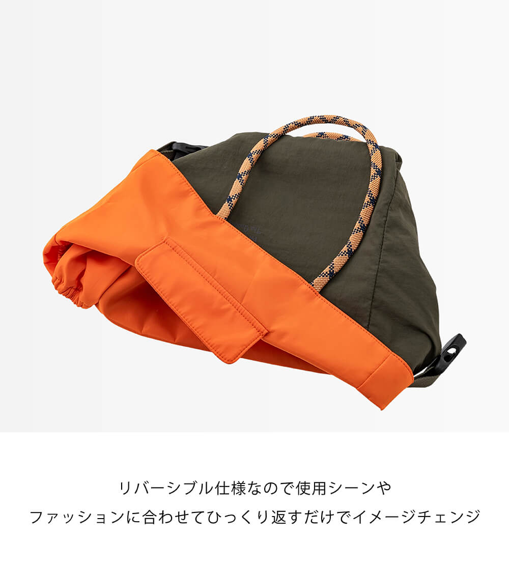 リバーシブル仕様でシンプルタイプとスポーティータイプ両方で使用可能。肩あて付きショルダーストラップが付属。