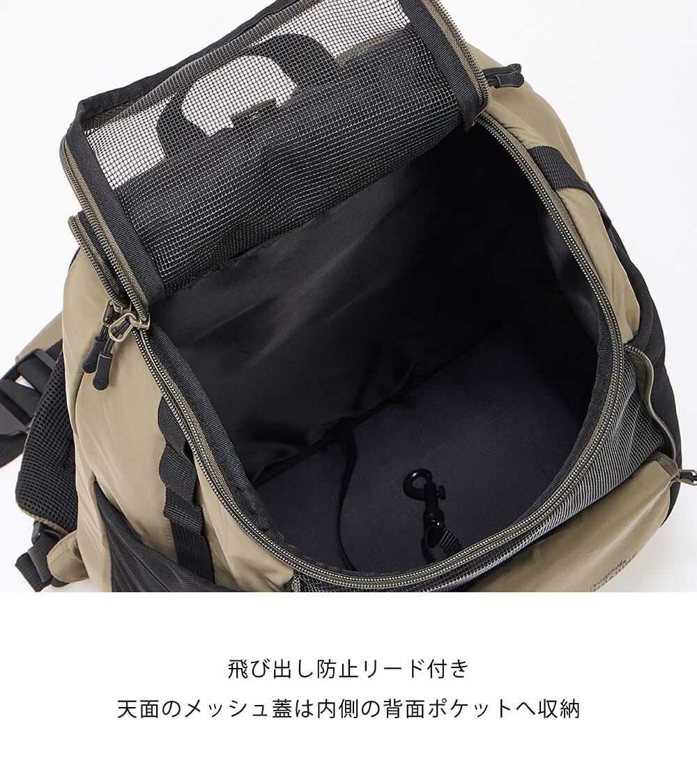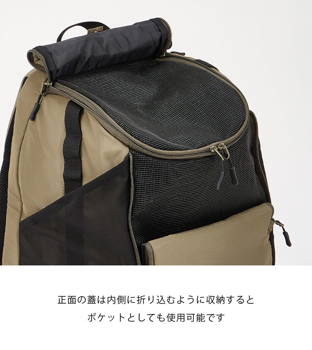 ・顔出しの際は天面の蓋を内側の背面ポケットに収納!