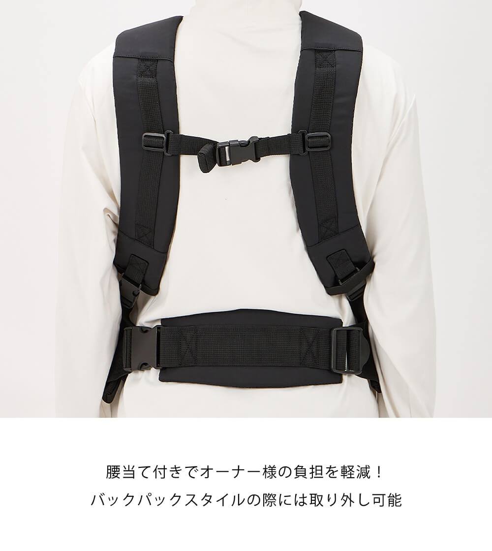 背中に背負ってバックパックとしても使用できる2WAYタイプ。