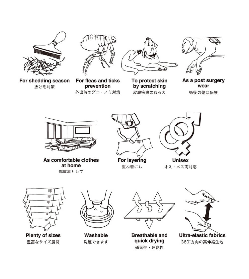 換毛期の抜け毛や皮膚のトラブル時など飼い主の悩みを解決!重ね着でも一枚でもおしゃれに活躍してくれる大人気アイテムです。