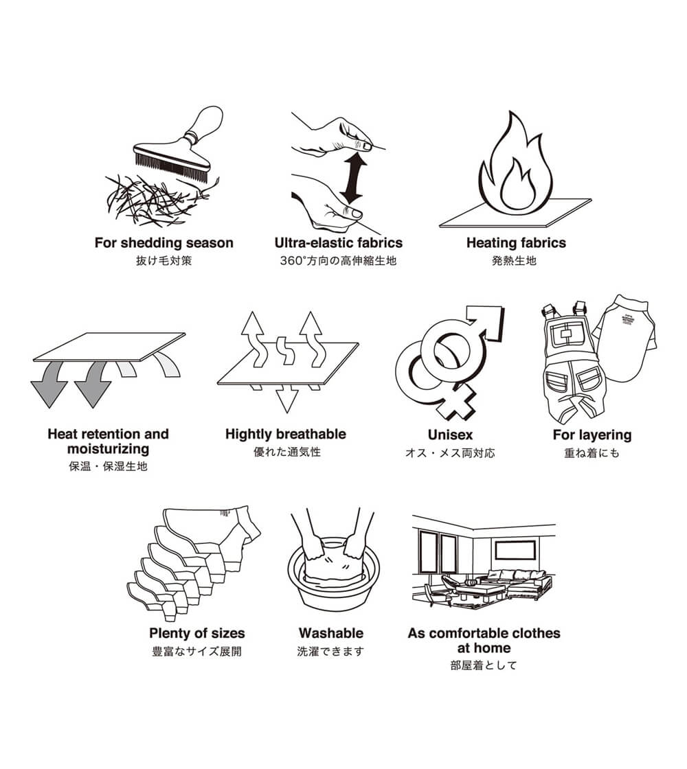 発熱効果のある生地を採用した保温性にも優れた柔らかいTシャツで寒がりなわんちゃんも暖かく過ごせます。