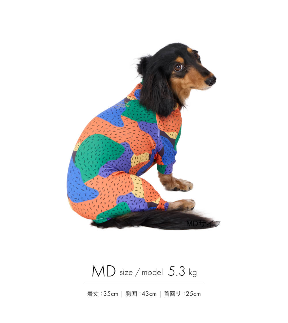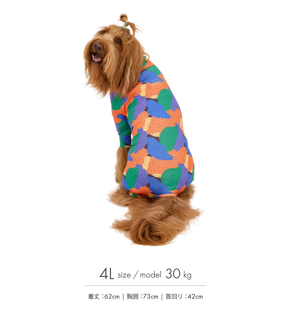 毛抜け対策や汚れ防止だけじゃ物足りないワンちゃんにとっておきのアイテム。1枚でも重ね着でもオシャレに決まるマルチプリントスーツ!