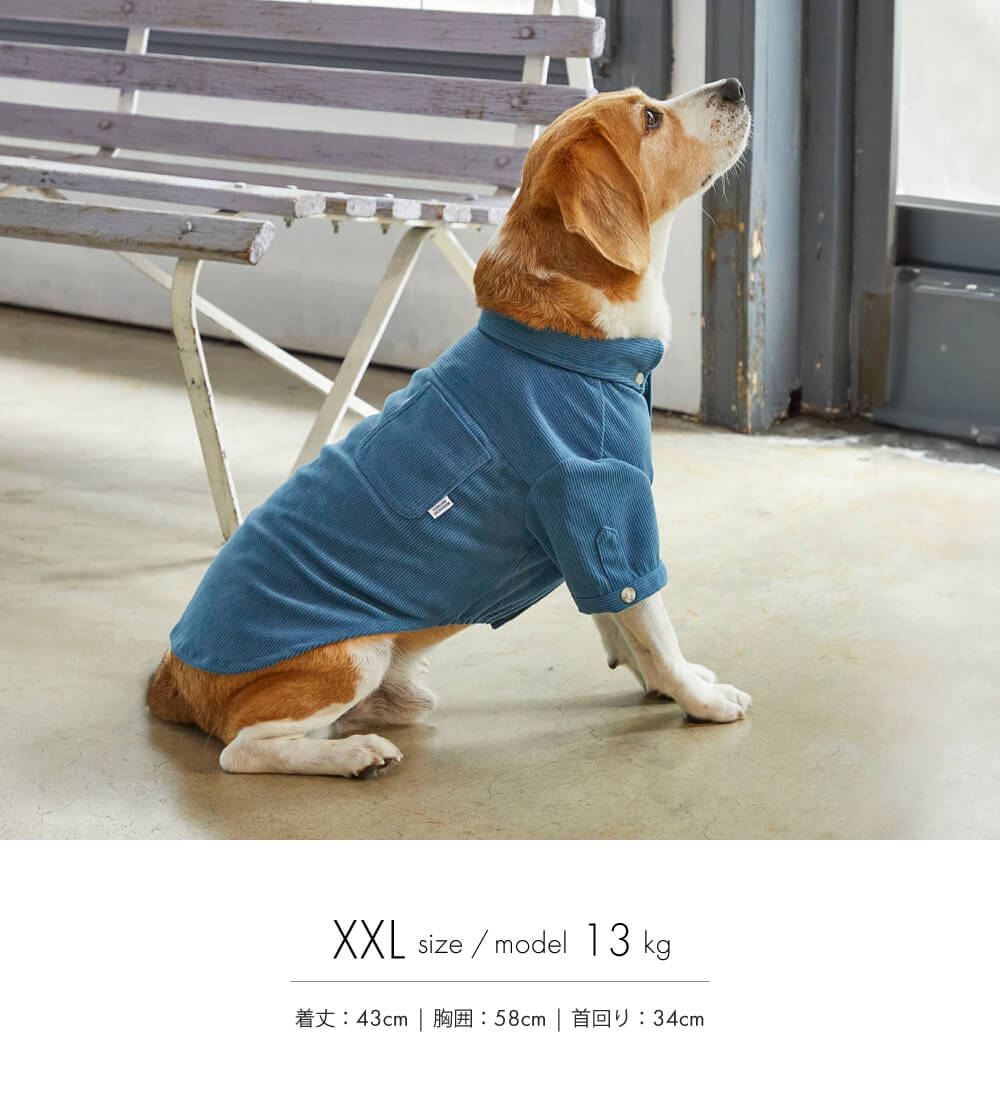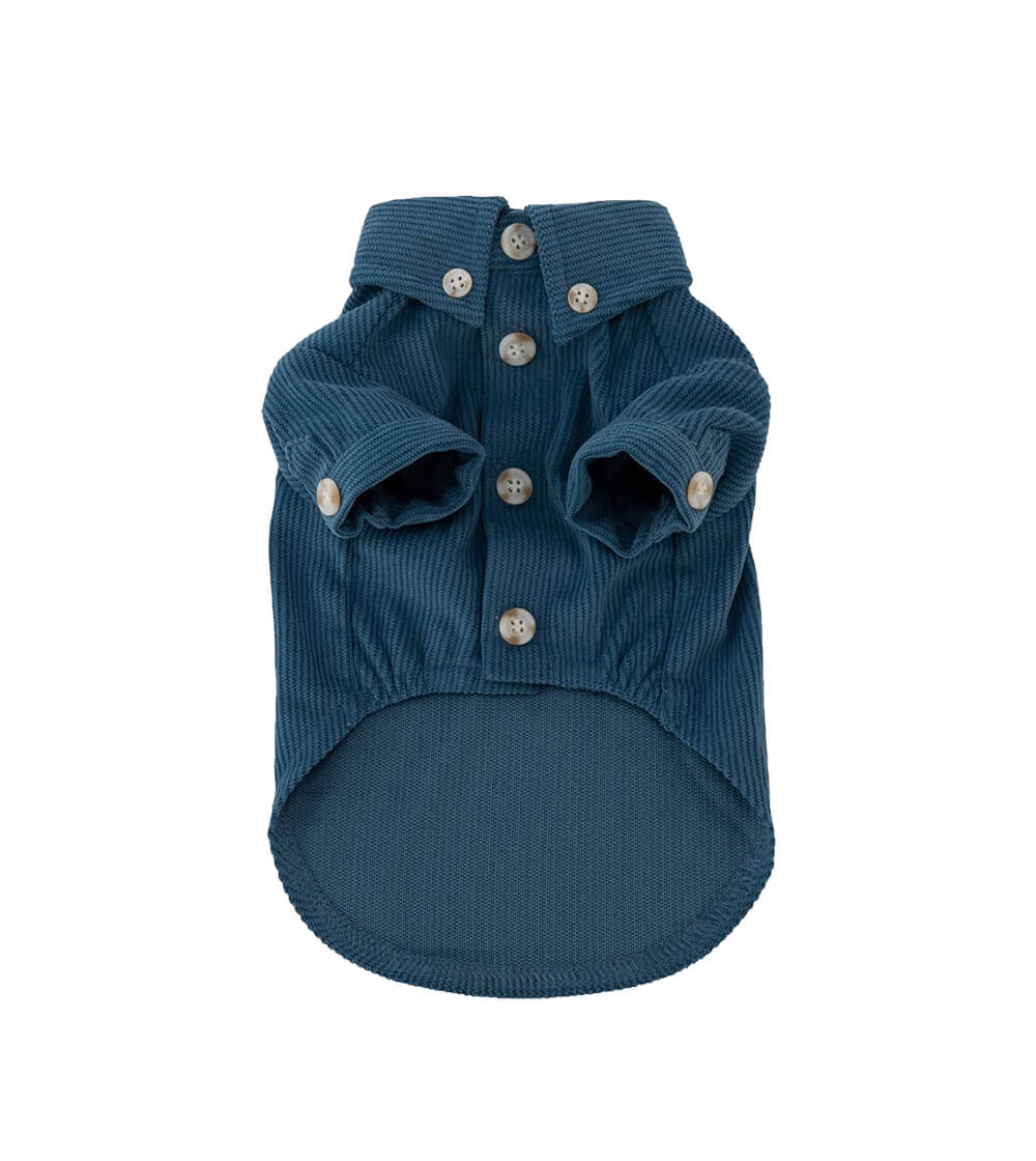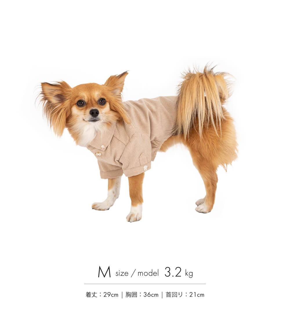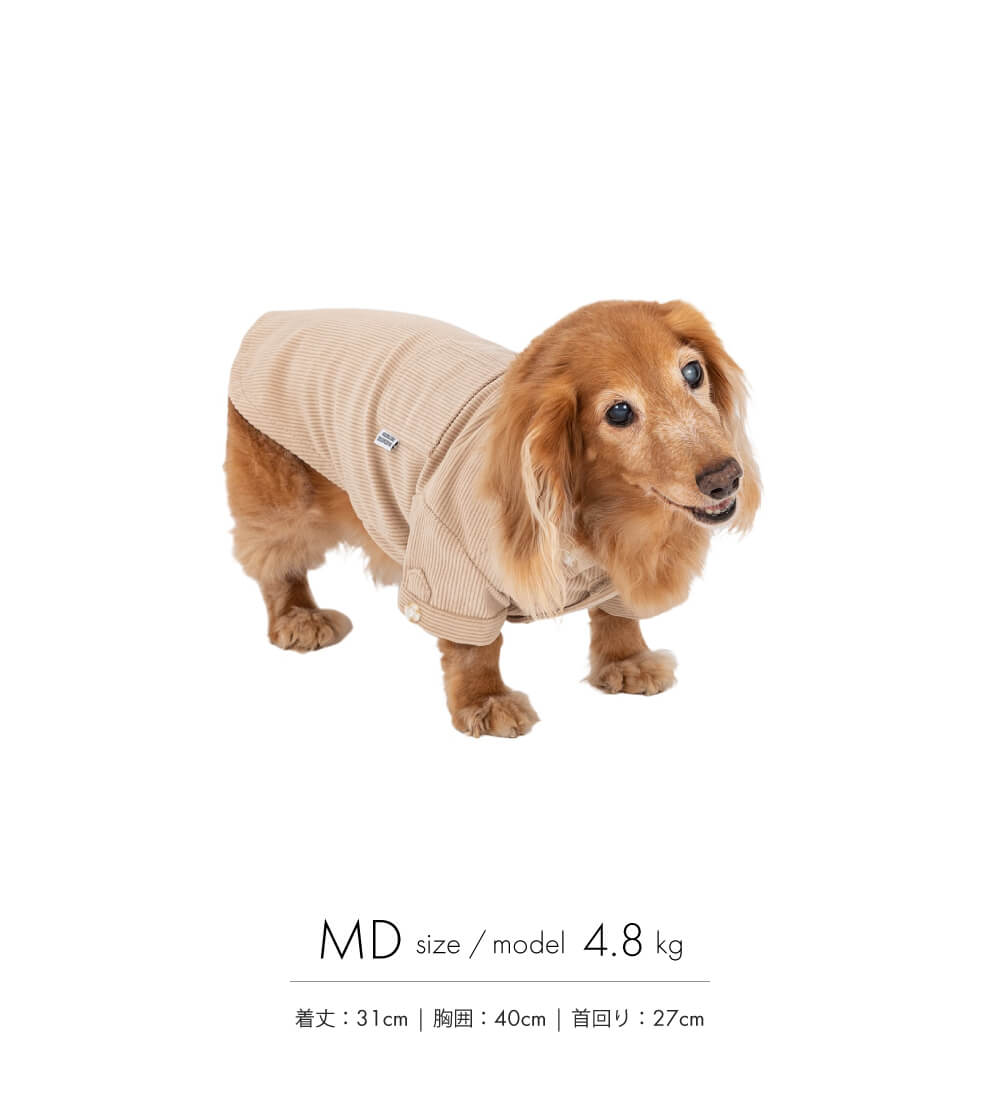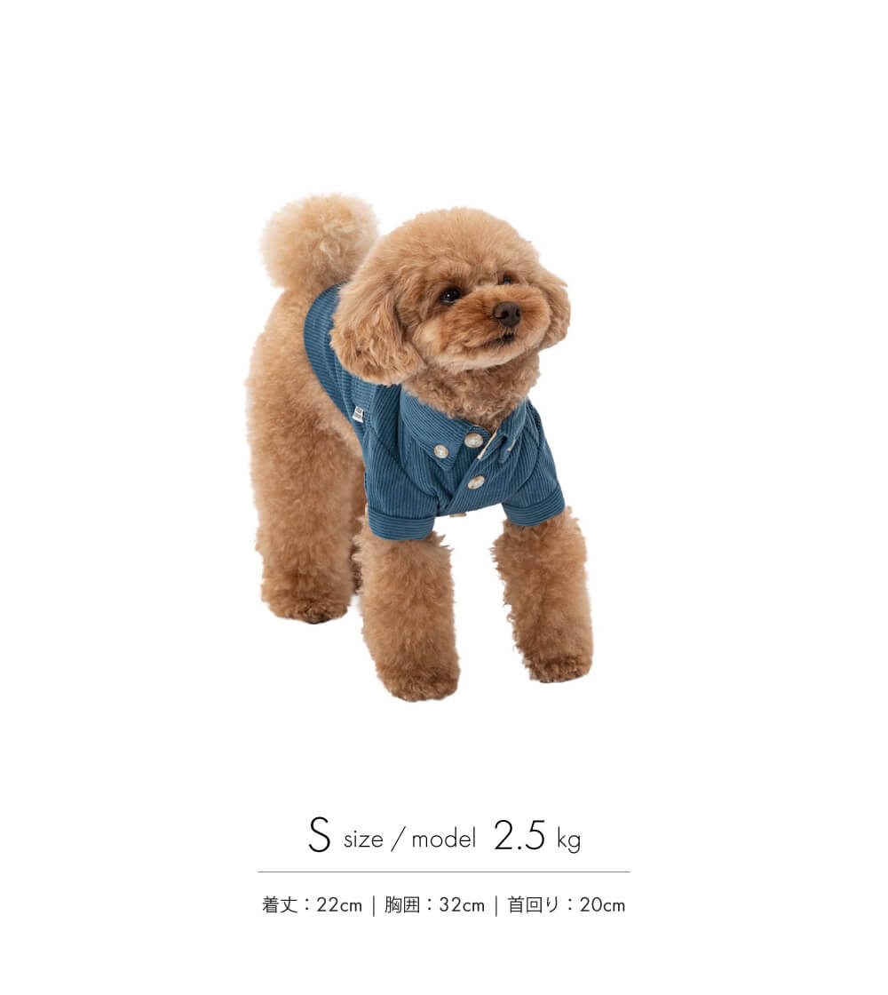 着心地の良い伸縮性のある素材を使用し、着脱のしやすい着脱テープ仕様のイミテーションボタンを採用しているので、ワンちゃんも快適。