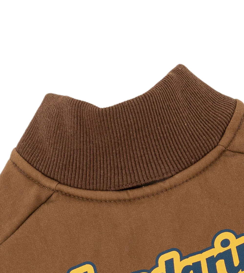 クラシカルなカレッジロゴプリントがレトロ調のスタジャン。