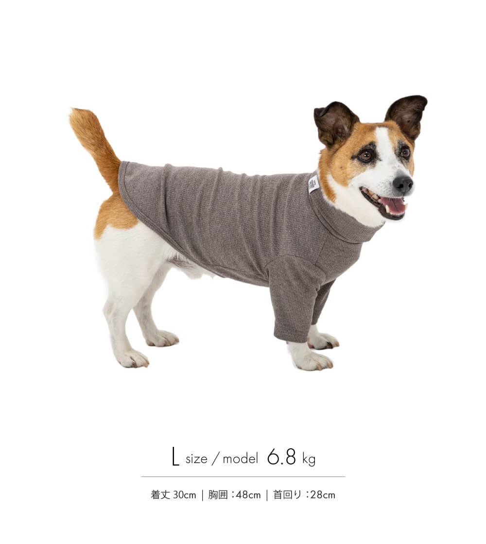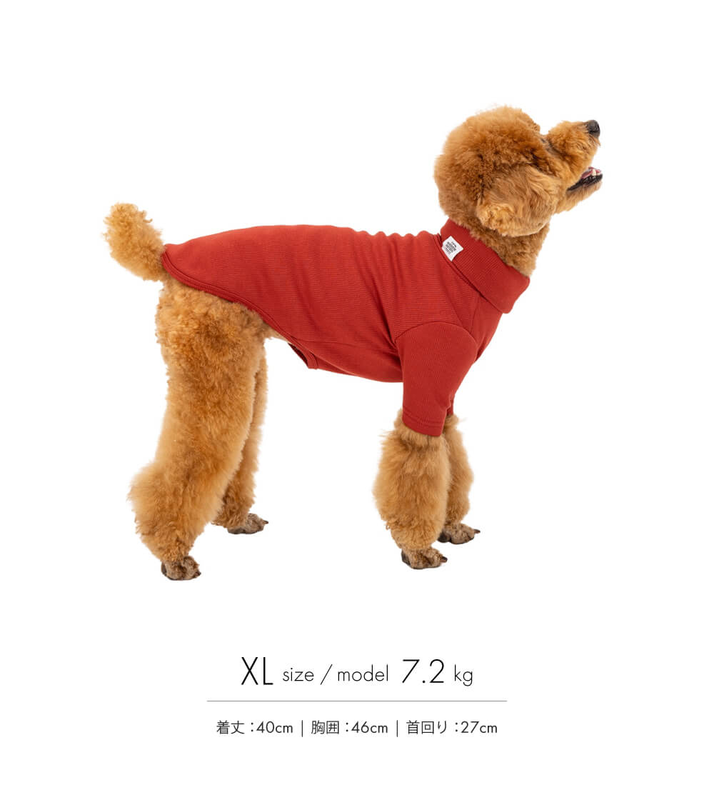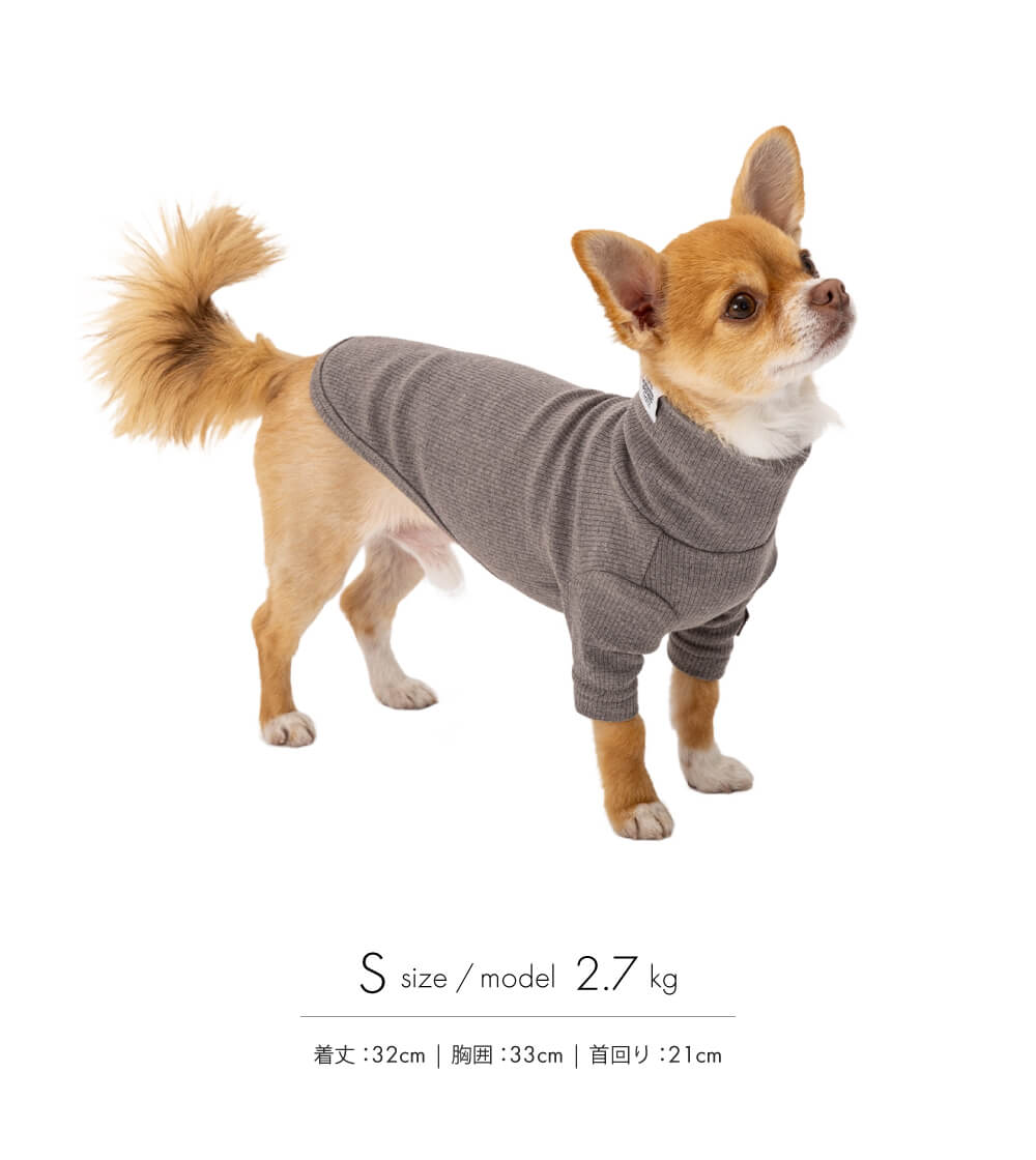 裏起毛で首まで暖かいハイネックロングスリーブTシャツ。