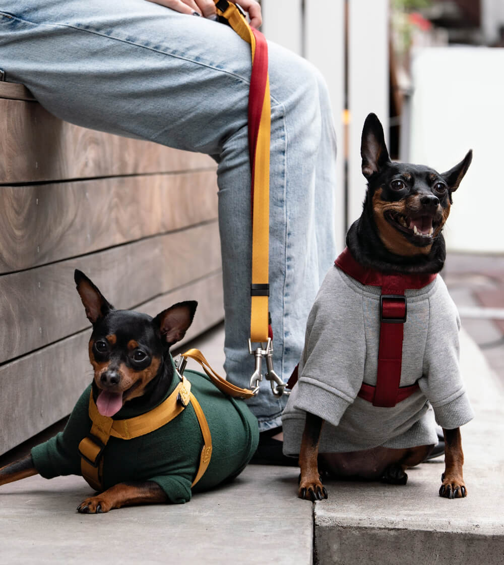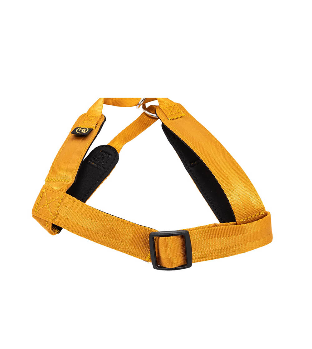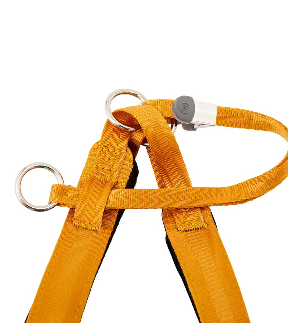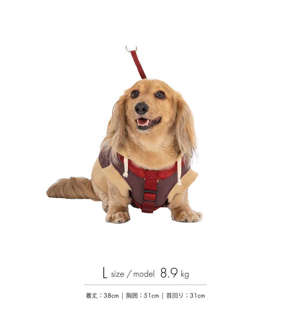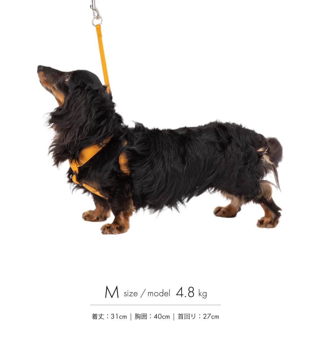 シンプルなデザインでウェアとの相性が抜群なハーネス。 三角クリップはアウターなどを重ね着するとき、サイズの微調整が簡単で便利。 身体に当たる部分にはネオプレーンを使って、耐圧を分散。 しなやかにフィットする胸ベルトなどワンちゃんに優しい仕様です。 また、製品には摩擦に強く耐久性の高いナイロン素材を使用しています。