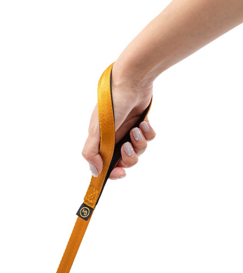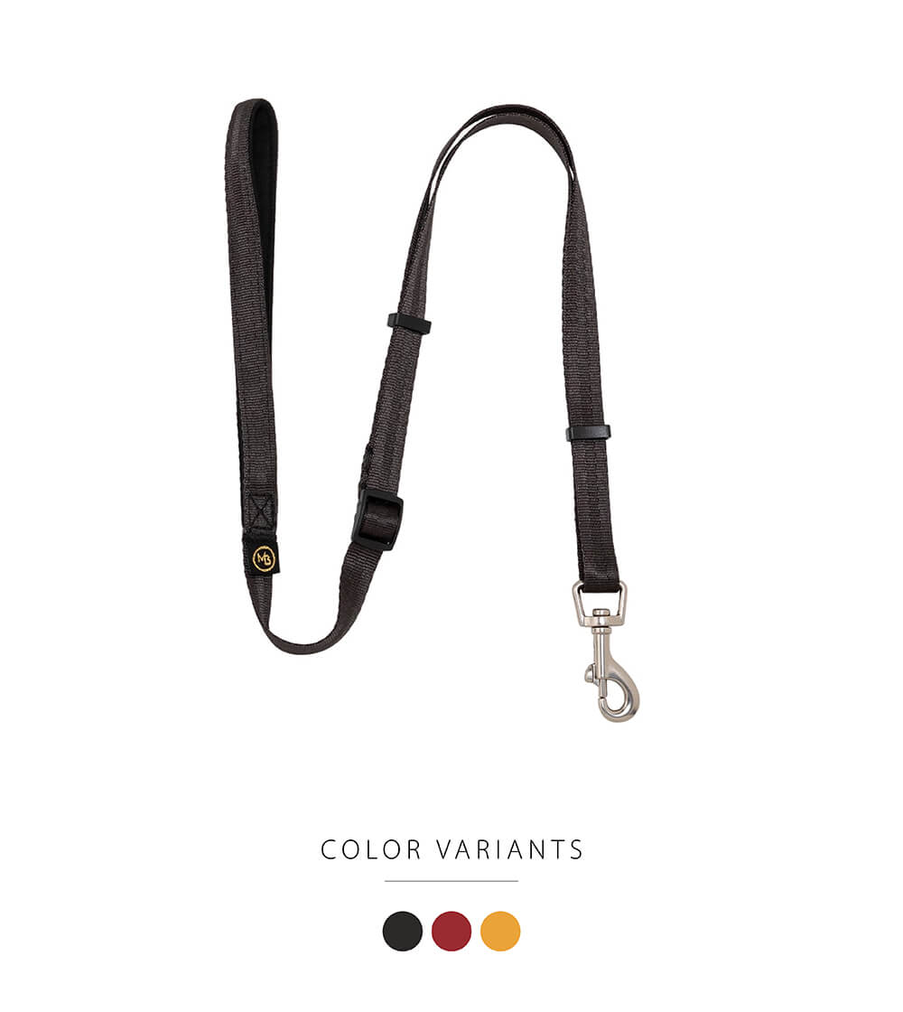 ・引っ張りの衝撃を緩和するクッション付きハンドル ・調整カンで体高に合わせた長さの変更が可能 ・MBの織りネーム付き
