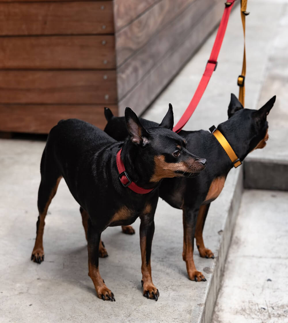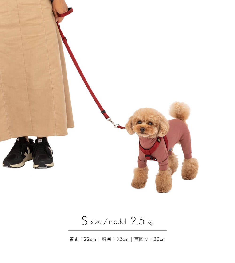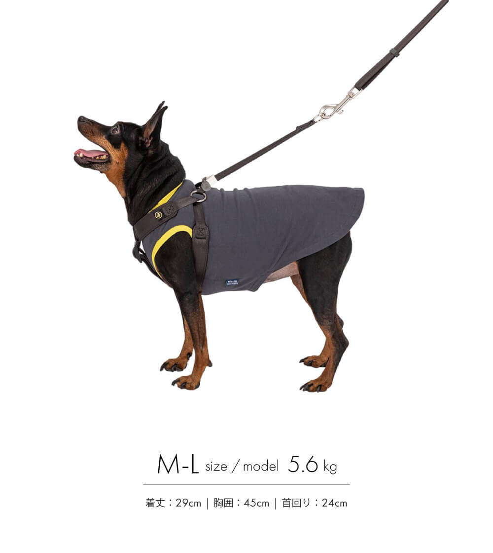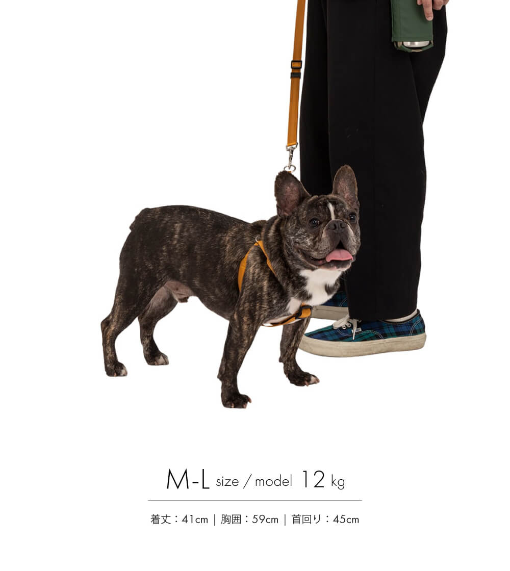 ワンちゃんの体高に合わせて長さを調整可能。 持ち手部の内側にはネオプレーンを使用しているので柔らかく、オーナー様にも優しい仕様です。 また製品には摩擦に強く耐久性の高いナイロン素材を使用しています。