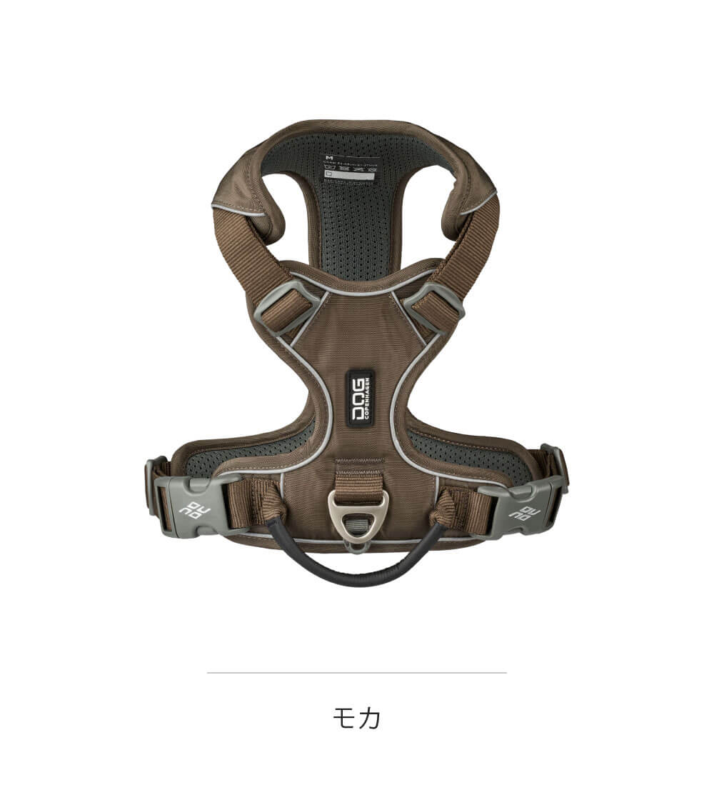 さらに新モデルでは、耐色性に優れたオックスフォードポリエステル素材を採用し、クッション性やフィット感も向上。細部まで進化した、より快適なハーネスとなっています。