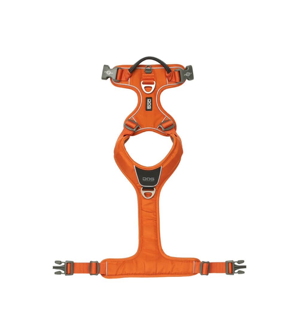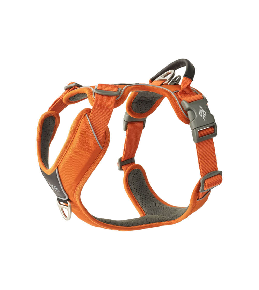 背中の持ち手や、背中と胸の2箇所にあるリード取り付けリングによって、シーンに応じた柔軟なコントロールが可能です。