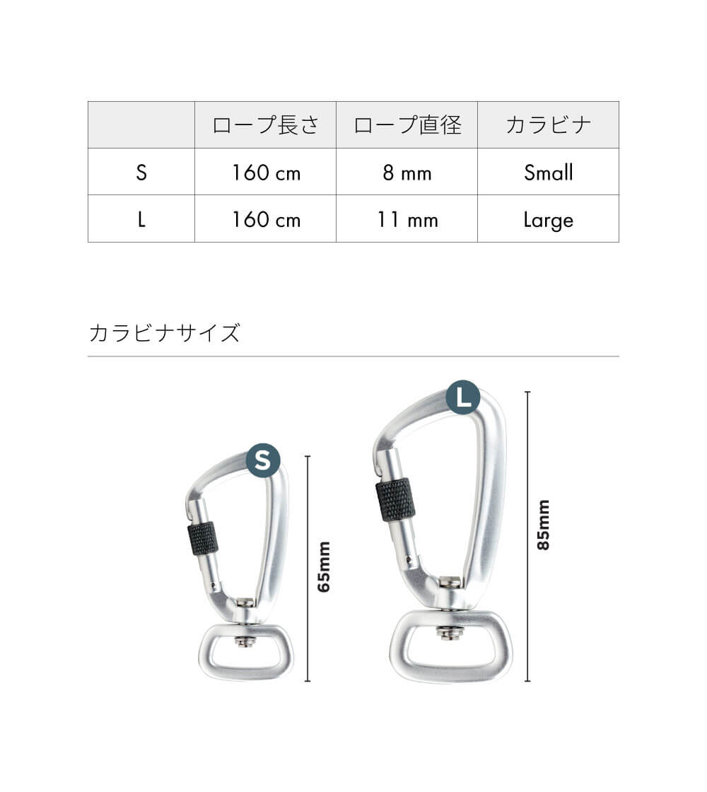 柔らかく耐久性のあるポリエステルロープを使用し、ネオプレンパッド入りの快適なハンドル、アクセサリー用Dリング、効果的な3M™リフレクティブトリム、そしてロック機能付きの軽量アルミ製カラビナを備えています。