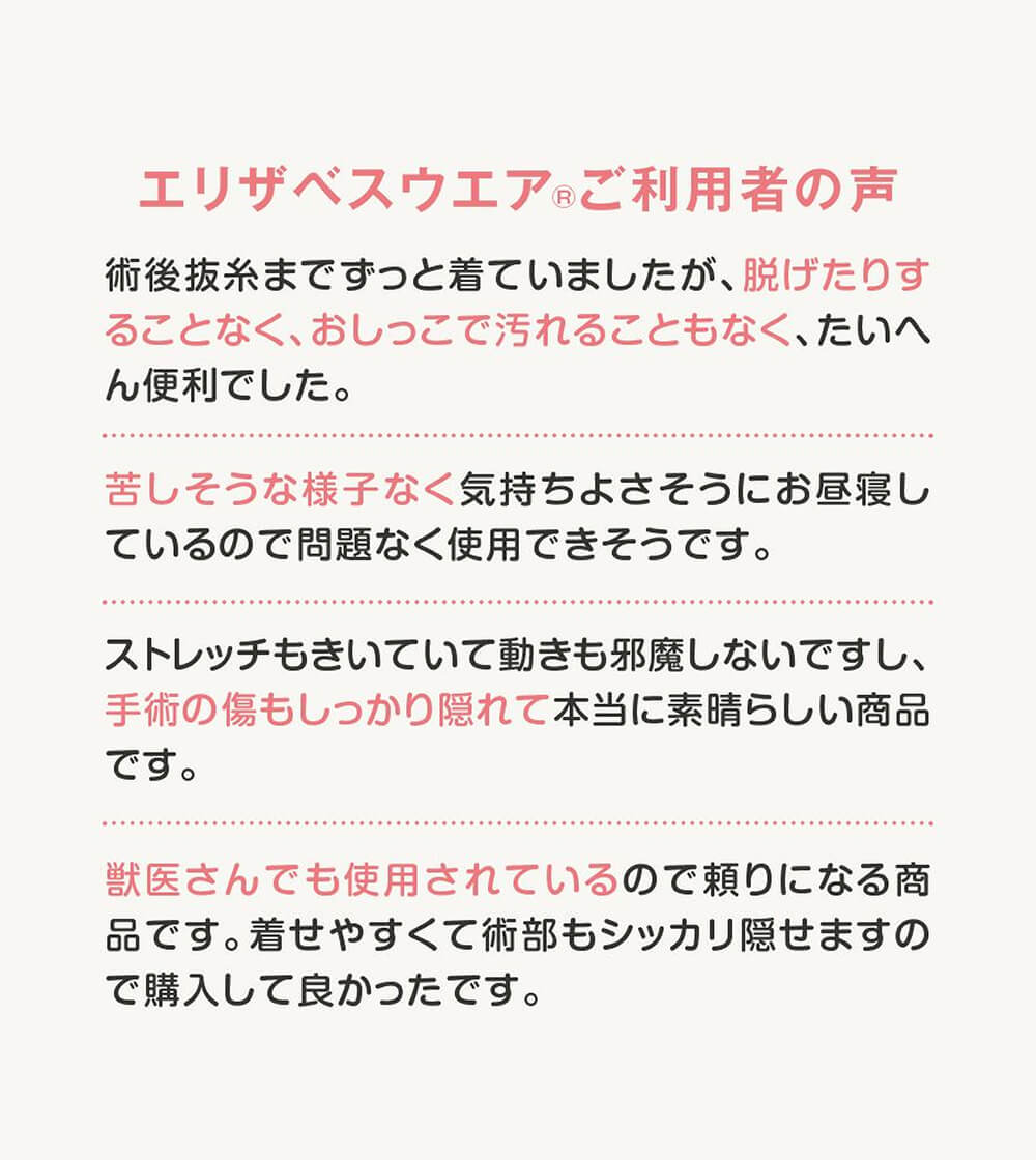 着せたまま排泄や通院もスムーズにでき、エリザベスカラーが苦手な子にも負担をかけません。