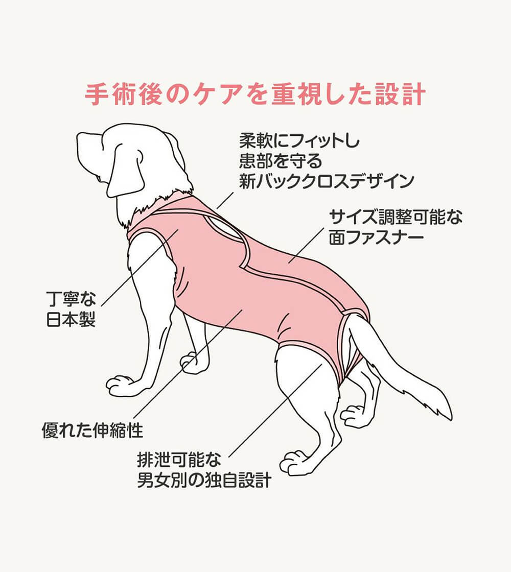 着せたまま排泄や通院もスムーズにでき、エリザベスカラーが苦手な子にも負担をかけません。