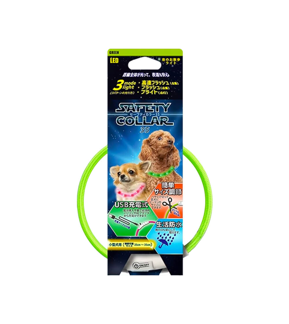 USB充電式・愛犬のサイズに合わせてカット出来るカラータイプのお散歩ライト。 首輪全体が光って夜道も安心のお散歩ライトです。 USB充電式で、パソコンやACアダプターから充電ができます。 高速フラッシュ(点滅)・フラッシュ(点滅)・ブライト(点灯)の3パターンの光り方がスイッチひとつで選択可能。 サイズ調節もできます。