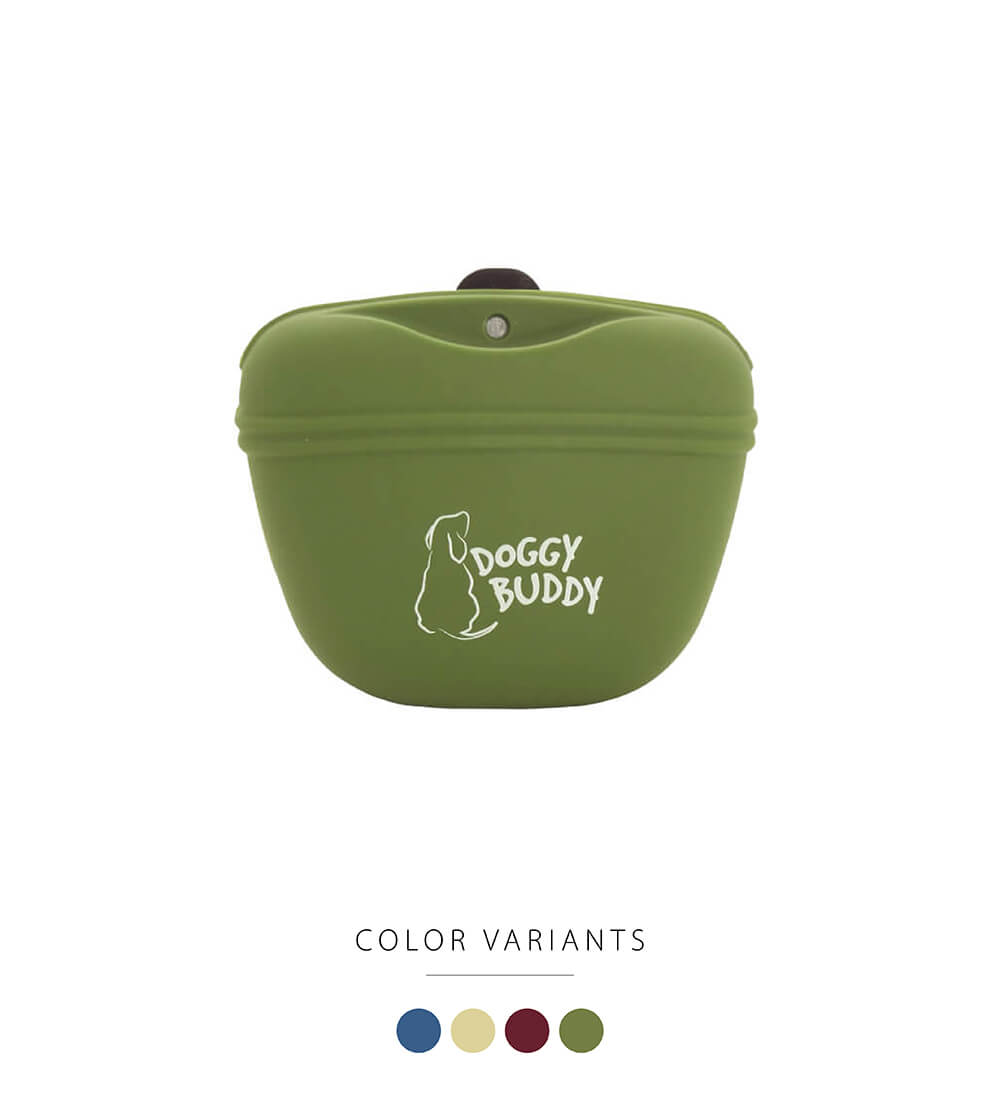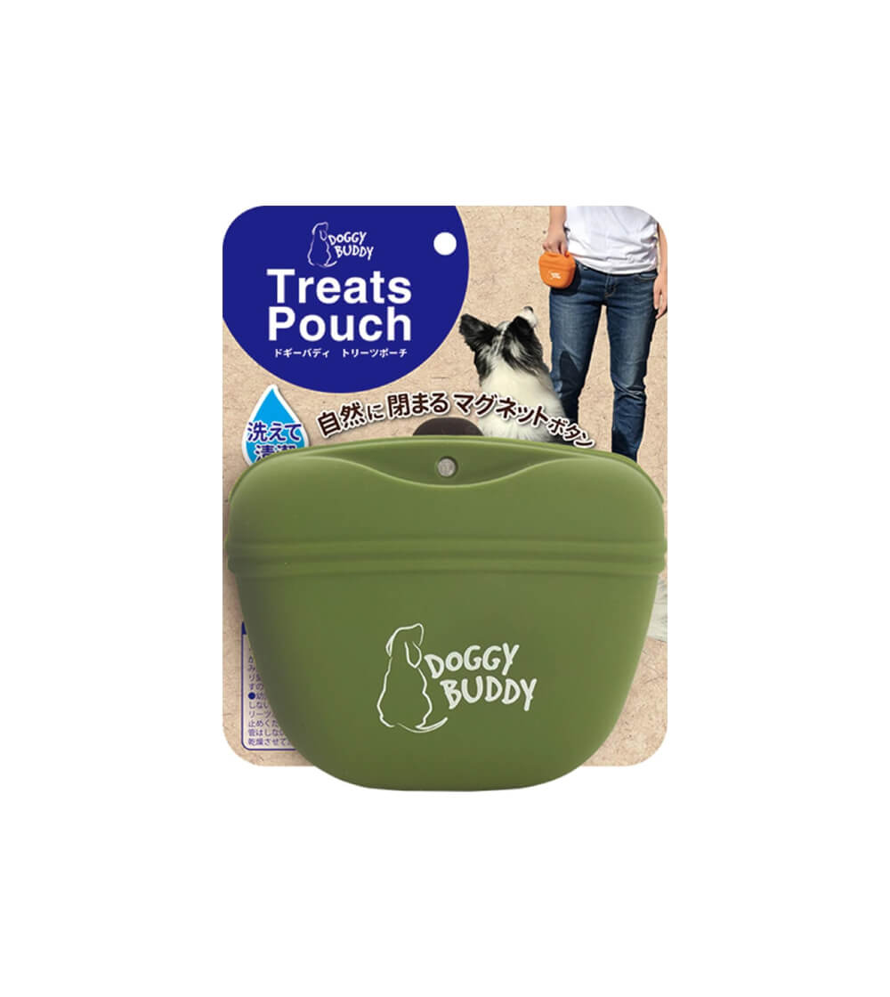 愛犬のトレーニングに使いやすいトリーツポーチです。 シリコン製で、トリーツの脂分などがついてもきれいに洗えて熱湯消毒もできるので、いつでも清潔にお使いいただけます。 開閉部は自然に閉まるマグネットボタンつきで、中身がこぼれず取り出しやすい構造です。