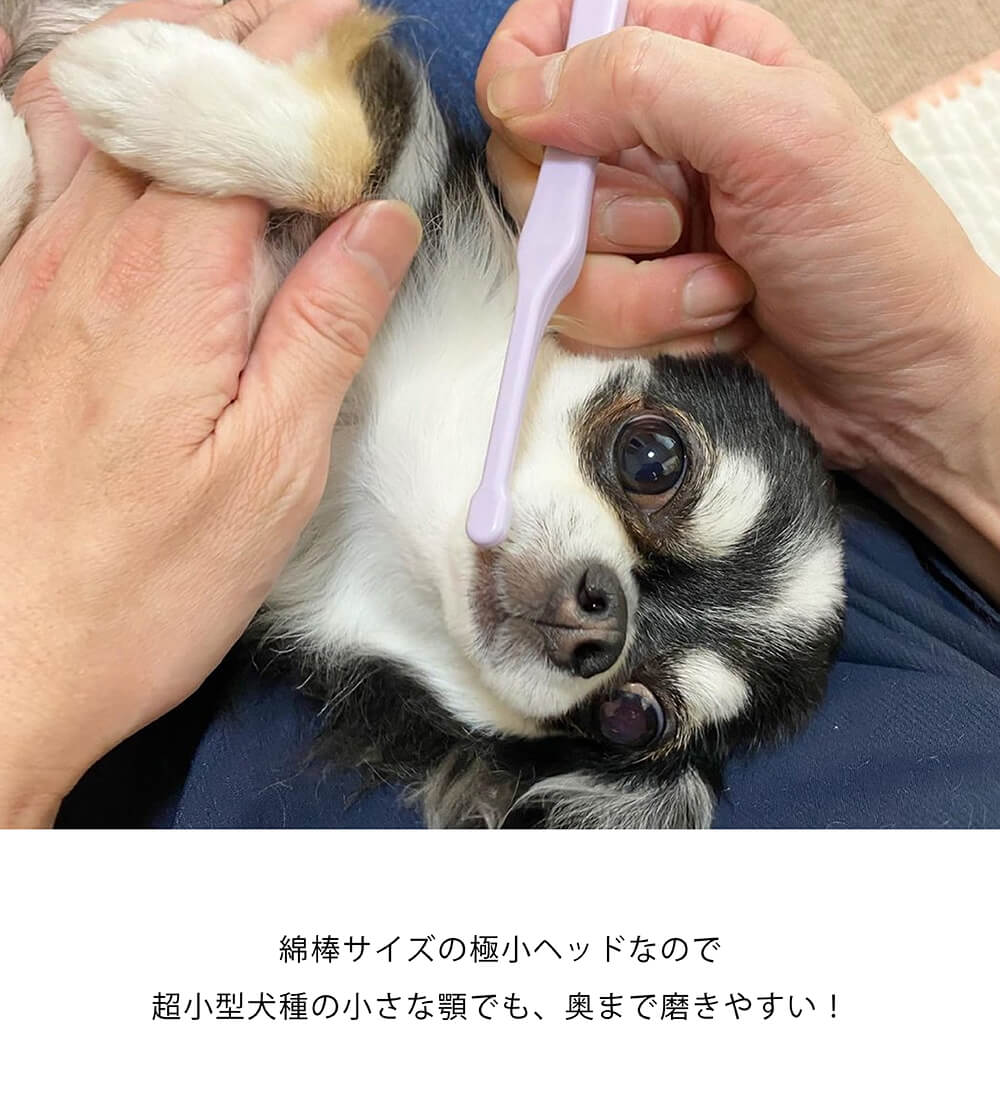 お口の小さな、猫・ヨーキー・マルチーズ・チワワ・パピヨン・ポメラニアンなどはもちろん、小型〜大型のわんちゃんの部分磨き用としても最適です。