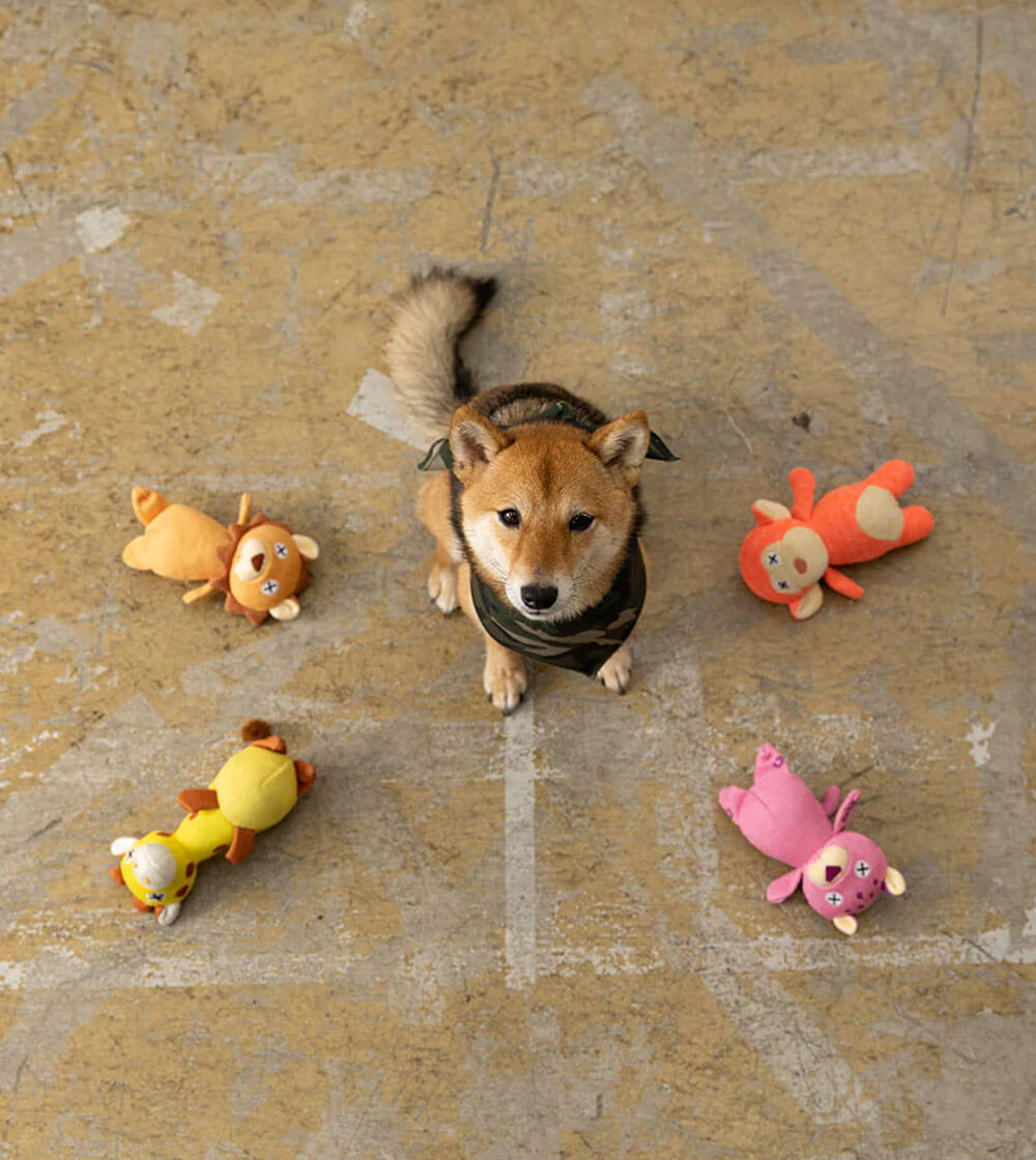 キューキュー鳴るスクイーカー入りで、噛んだり咥えたり振り回したり遊び方いろいろ。