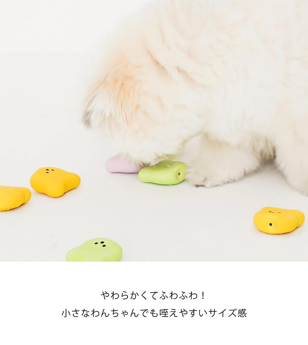 小型犬でもくわえやすい小さめサイズのラテックストイは、無蛍光染料で口に入れても安心。