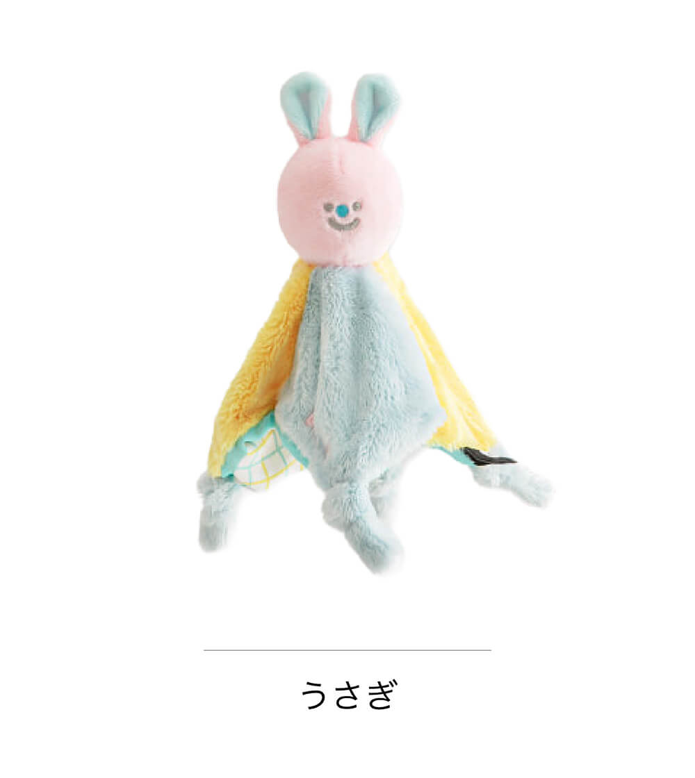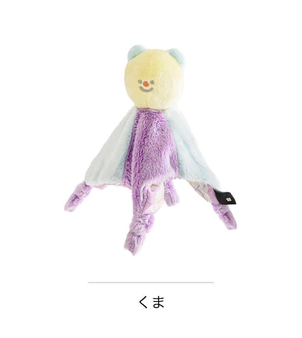 カシャカシャ音とピーピー音、2つの音で楽しめるBITE ME(バイトミー)のブランケット型おもちゃ。